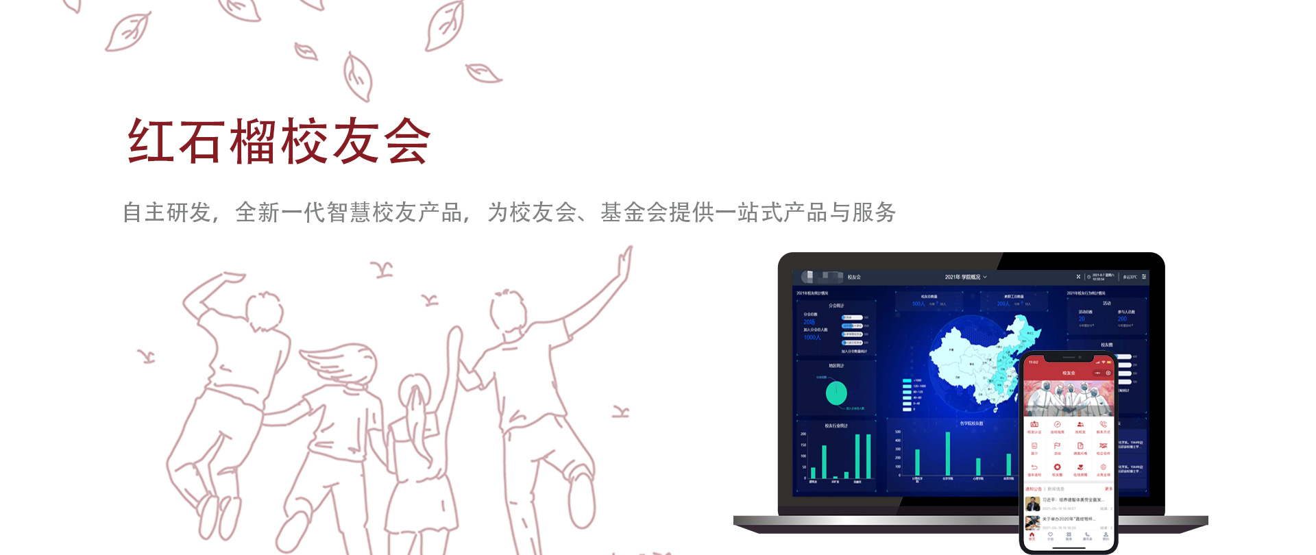 自主研發,全新一代智慧校友產品,為校友會、基金會提供一站式產品與服務。